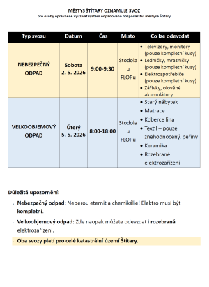 Mobilní sběry uvedených odpadů jsou v městysi Štítary 2x za rok.